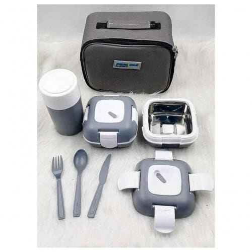 ماسك طعام لانش بوكس كيس عازل وصناديق معزولة + 3 سكاكين – رمادي