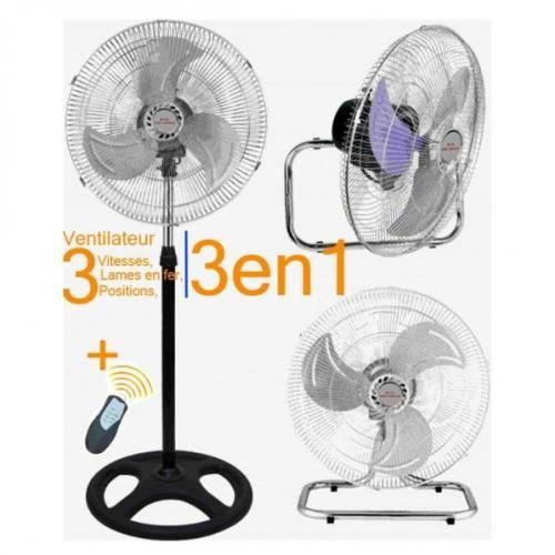 هذه المروحة المعدنية ثلاثية الشفرات عبارة عن مروحة 3 في 1 ، يمكن أن تكون مروحة قاعدة أو مروحة أرضية أو مروحة مثبتة على الحائط. وهي مصنوعة من محرك الألمنيوم وشواية مسحوق الفضة ، مع رياح عريضة الزاوية فائقة القوة ، ويمكن نقلها بسهولة إلى أي مكان.