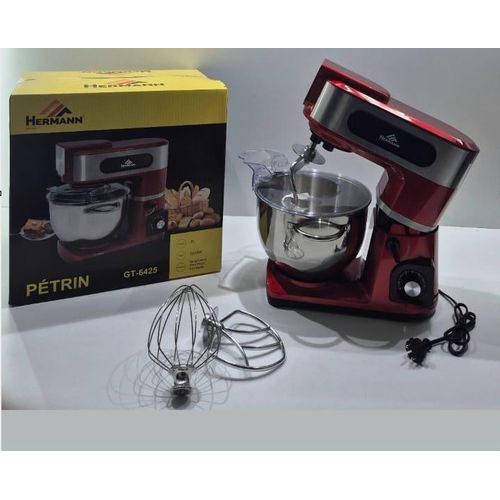 HERMANN Robot pétrin multifonctions-2000W, 6 vitesses ,Bol en inox 7L – Rouge