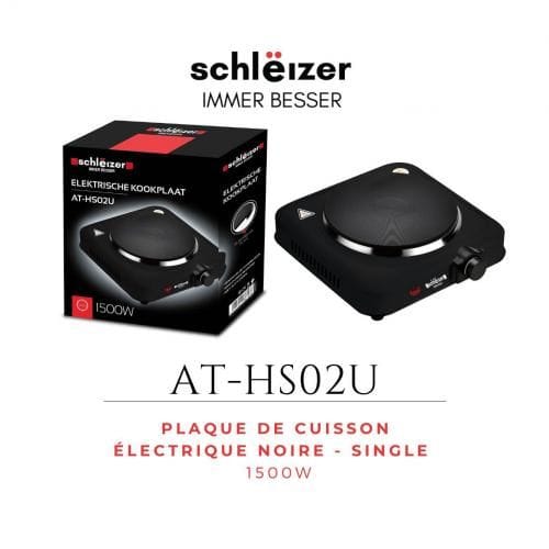 schlëizer Plaque de cuisson électrique noire – SINGLE – 1500W