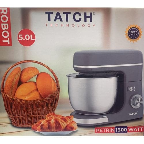 TATCH Robot pétrin multifonctions-1300W, 6 vitesses ,Bol en inox 5L – Gris